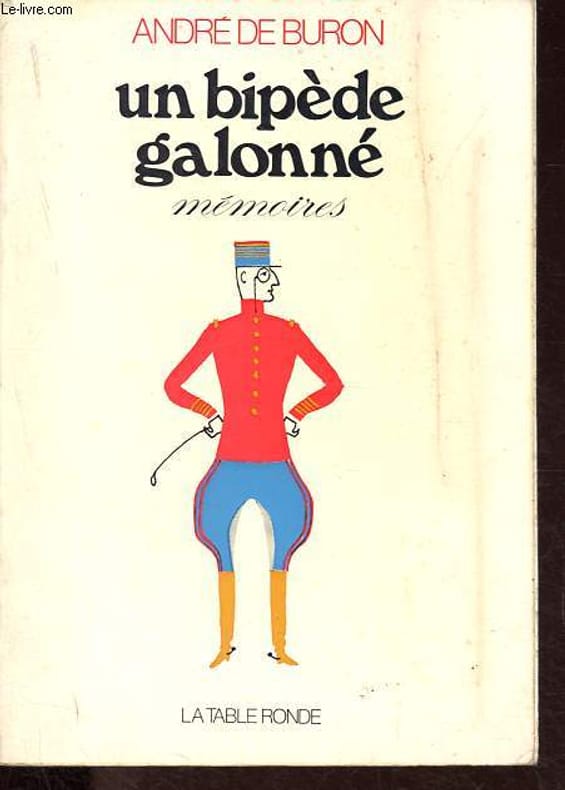 « Un bipède galonné » ce sont les souvenirs d'un cavalier qui, pendant quarante ans, fut de toutes les campagnes et sut garder l'œeil ouvert pour se moquer de tout. André de Buron fait ses premières armes en 1919, en Turquie, guerre complètement oubliée d'une France qui jouit de la paix – une paix bien gagnée, il est vrai. Quand il terminera sa carrière, en Algérie, ce sera encore la guerre, une triste guerre. Entre-temps, la Tunisie (Biribi), le Maroc, le front des Ardennes, et l'Afrique noire, l'Indochine : un parcours complet d'équitation. Dans ces décors divers, ce diable d'homme promène, au milieu des dangers et des accidents les plus fous, une malice inépuisable. Ce livre si vif, plein de courage, d'éclats et de moquerie semble fait pour prouver que les Français sont encore une insolente nation. Pourquoi André de Buron a-t-il découvert si tard le plaisir de raconter, plaisir qu'il fait partager comme personne ? Pourquoi Nicole de Buron a-t-elle donné une préface à ce livre ? C'est ce que vous saurez précisément en lisant la préface. — France, régions sahariennes, Levant (1918-1921). Saumur, Tunisie (1922-1930). Maroc (1930-1934). Saumur, Saint-Avold (1934-1937), Algérie (1937-1939), Front de France, Sud tunisien, Algérie (1939-1942). Afrique noire (1942-1943). Italie (1944). France (1945-1946). Indochine (1946-1948). Tunisie (1948-1951). Algérie (1951-1956).