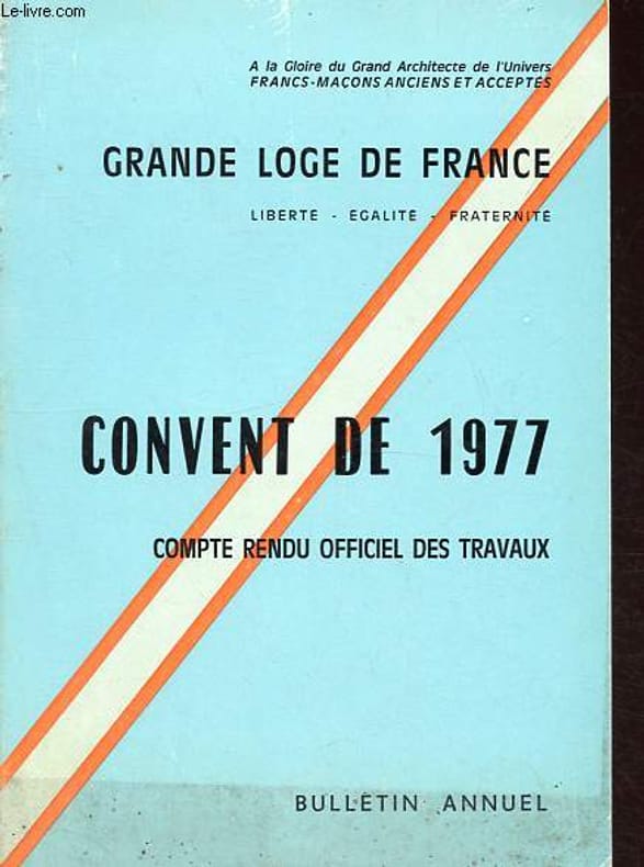 Grande Loge de France. 1977. In-8. Broché. Etat d'usage, Tâchée, Dos frotté, Quelques rousseurs. 243 pages - coins frottés, papier jauni.. . . . Classification Dewey : 366.1-Franc-maçonnerie