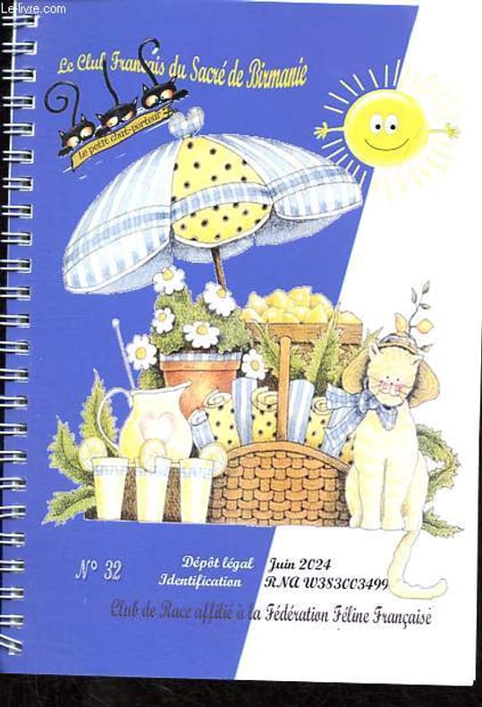 Club français du Sacré de Birmanie. 2024. In-8. Broché. Bon état, Couv. convenable, Dos satisfaisant, Intérieur frais. 44 pages reliées en spirale, nombreuses illustrations et photos en noir et blanc et en couleur dans et hors texte.. . . . Classification Dewey : 636.8-Chats