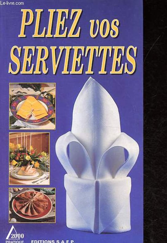 très nombreuses illustrations en couleurs, schémas de pliage et photographies 1ere édition, 1998 Contents, Chapitres : Introduction - Le choix des serviettes - Réalisations : Une quarantaine de modèles présentés de façon illustrée et didactique bon état, intérieur frais et propre, legere trace d'étiquette de prix au bas du plat inférieur de la couverture