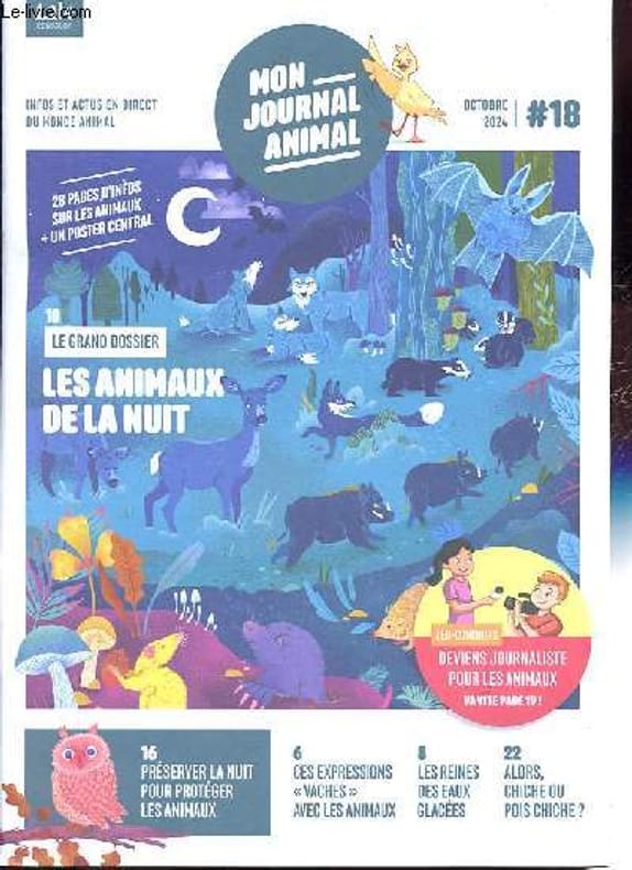 Sommaire: Du coq à l'ane - Ces expressions vaches avec les animaux - Les reines des eaux glacées - Quel animal de la nuit es-tu ? - Baptiste au secours des animaux - Alors, chiche ou pois chiche - Plus tard je voudrais etre... Chef cuisinier - Botter, l'ane qui botte et trotte - Le cil vert - Le clin d'oeil de Rosa B - Les animaux de la nuit - Préserver la nuit pour protéger les animaux. Classification Dewey : 70.49-Presse illustrée, magazines, revues