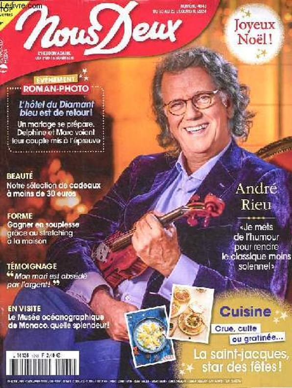Sommaire: André Rieu - Les immortels de la comédie musicale - C'est leur histoire: maladie de Parkinson - spécial fête: 10 cadeaux à moins de 30€ - Pour les repas de fêtes, attention aux excès - 6 bonnes raisons de retrouver le plaisir de jouer - quelle fétarde êtes-vous - Stretching - Qu'est-ce que l'assurance affinitaire - Le musée océanographique de Monaco - Poêlée, gratinée, crue: la saint-jacques - Romans-photos: L'hotel du Diamant bleu, unis pour la vie + Les vents contraires. Classification Dewey : 70.49-Presse illustrée, magazines, revues