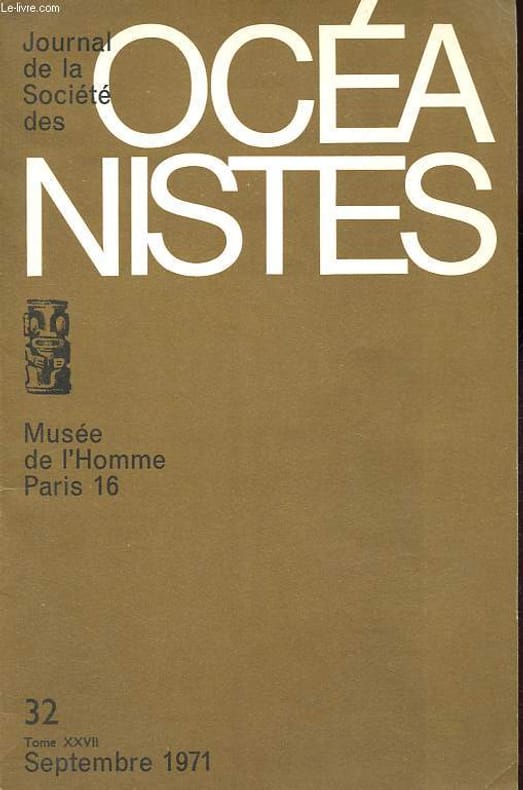 Société des Océanistes. 1971. In-8. Broché. Etat d'usage, Couv. légèrement pliée, Coiffe en tête abîmée, Papier jauni. paginé de 219 à 305 pages, nombreuses figures dans et hors texte - Texte en français en anglais - coins frottés, annotations au crayon papier en marge de quelques pages.. . . . Classification Dewey : 70.49-Presse illustrée, magazines, revues