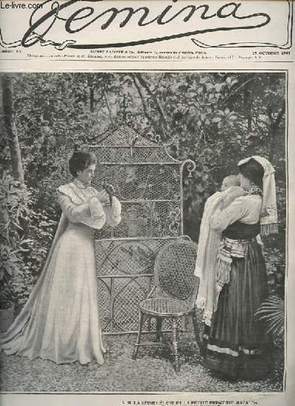 Femina. 1903. In-Folio. Broché. Etat d'usage, 1er plat abîmé, Agrafes rouillées, Mouillures. paginé de 694 à 708 pages agrafées + XXV pages publicitaires en un volume - petite déchirure sur le 1er plat publicitaire partiellement manquant, déchirures sur le dos partiellement fendu et désolidarisé, coins et tranches frottés, mouillures sur les pages entrainant quelques taches et des petites déchirures en tranche de gouttière de quelques pages ne génant pas la lecture, papier jauni.. . . . Classification Dewey : 70.49-Presse illustrée, magazines, revues