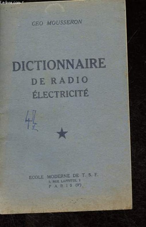 Ecole moderne de T.S.F.. non daté. In-8. Broché. Etat d'usage, Couv. légèrement pliée, Coiffe en pied abîmée, Papier jauni. 70 pages, nombreuses illustrations ennoir et blanc dans le texte, texte en 2 colonnes - coins frottés, annotation à l'encre sur le 1er plat, plats partiellement décolorés.. . . . Classification Dewey : 621.382-Télécommunications