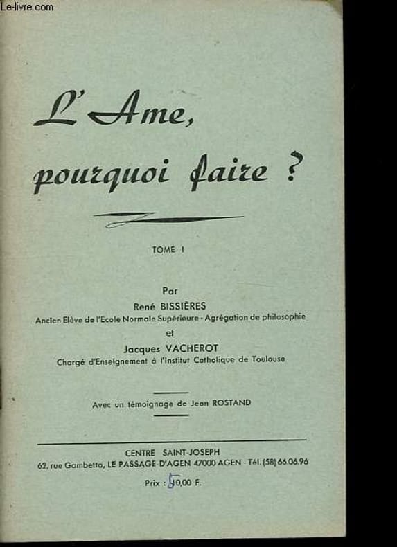 Avec un témoignage de Jean Rostand. Classification Dewey : 100-PHILOSOPHIE ET DISCIPLINES CONNEXES