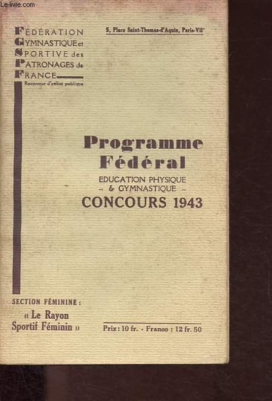 F.G.S.P.F.. 1943. In-8. Broché. Etat d'usage, Tâchée, Dos satisfaisant, Papier jauni. 64 pages, nombreuses illustrations en noir et blanc dans le texte - coins frottés, plats, contreplats, pages de titre et dernière page tachés.. . . . Classification Dewey : 796.4-Athlétisme et gymnastique