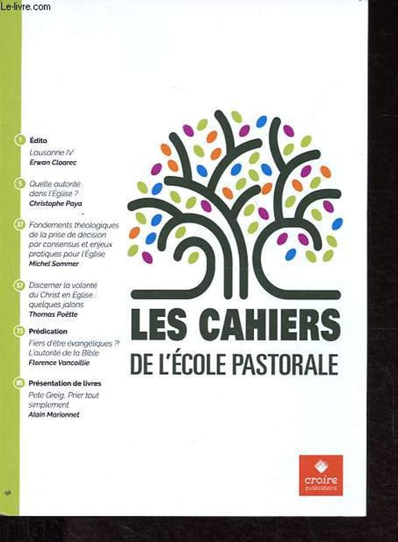 Sommaire: Lausanne IV - Quelle autorité dans l'Eglise ? - Fondements théologiques de la prise de décision par consensus et enjeux pratiques pour l'Eglise - Discerner la volonté du Christ en Eglise: quelques jalons - Fiers d'être évangéliques ?! L'autorité de la Bible - Pete Greig, Prier tout simplement. Classification Dewey : 70.49-Presse illustrée, magazines, revues