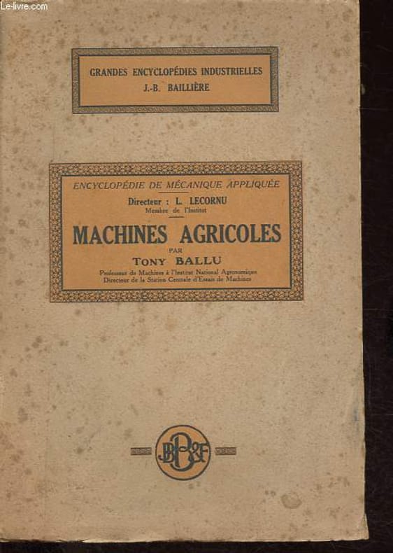 Collection Encyclopédie de mécanique appliquée. Classification Dewey : 631-Equipement agricole