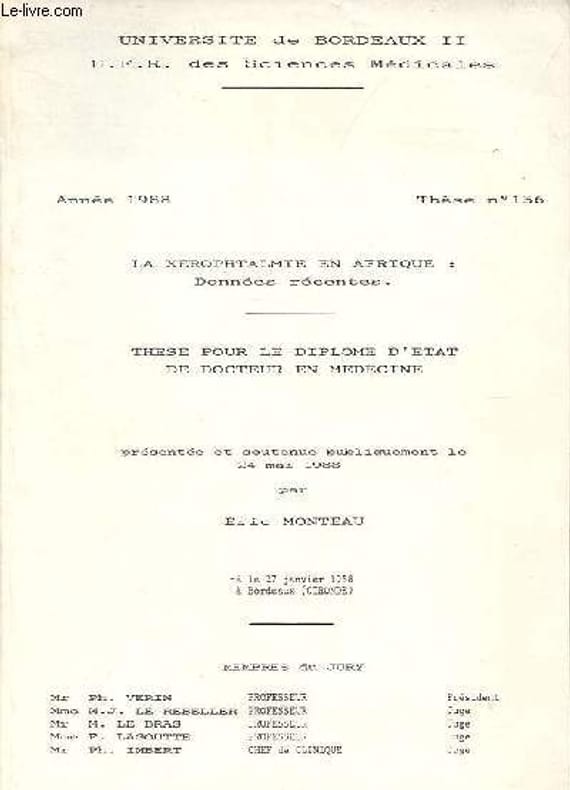 A compte d'auteur. 1988. In-4. Broché. Etat d'usage, Coins frottés, Dos satisfaisant, Papier jauni. 88 pages, quelques cartes et graphiques en noir et blanc dans et hors texte.. . . . Classification Dewey : 617.7-Ophtalmologie