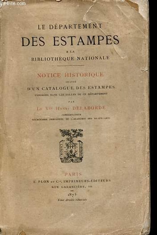 E. Plon et Cie. 1875. In-12. Broché. A relier, Couv. légèrement pliée, Dos abîmé, Non coupé. 442 pages - papier jauni, quelques rousseurs, petites déchirures sur les plats, 1er plat rogné en coin en tête, dos fendu, coiffes abimées.. . . . Classification Dewey : 769-Estampes