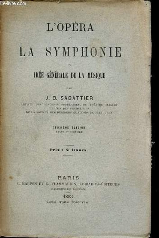 C. Marpon et E. Flammarion. 1883. In-8. Broché. Etat d'usage, Couv. légèrement passée, Coiffe en tête abîmée, Quelques rousseurs. 106 pages - papier jauni, coins frottés, dos partiellement fendu.. . . . Classification Dewey : 782.1-Théâtre musical, opéra