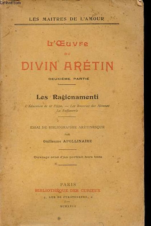 Paris, Bibliothèque des curieux, colllection "Les maitres de l'amour", 1919, 1923, 1 br. 2 volumes in-8 de (6)-229-(5) pp., portrait en frontispice et (8)-XXIX-269-(5) pp., portrait en frontispice ;