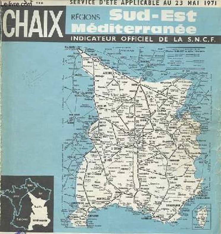 "Chaix. 1971. In-8. Broché. Etat d'usage, Tâchée, Dos frotté, Papier jauni. paginé de 505 à 654 pages, en supplément une page en feuillet ""Relations entre le continent et la Corse - Service fer-mer"" - pliures sur les plats, annotations au crayon papier et à l'encre sur le 1er plat, coins frottés, coiffes abimées.. . . . Classification Dewey : 388-Transports, locomotion"