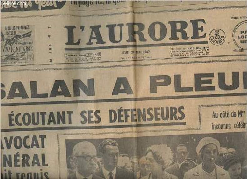 L'aurore. 1962. In-Folio. En feuillets. Etat d'usage, Couv. légèrement pliée, Dos satisfaisant, Papier jauni. non paginé, 12 pages en feuillets, nombreuses photos et illustrations en noir et blanc dans le texte - déchirure sur le 1er plat.. . . . Classification Dewey : 70.1-Journaux