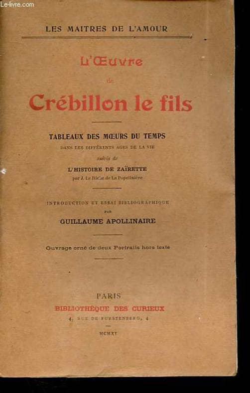 Collection Les maitres de l'amour. Introduction et essai bibliographique par Guillaume Apollinaire. Classification Dewey : 840.091-XX ème siècle
