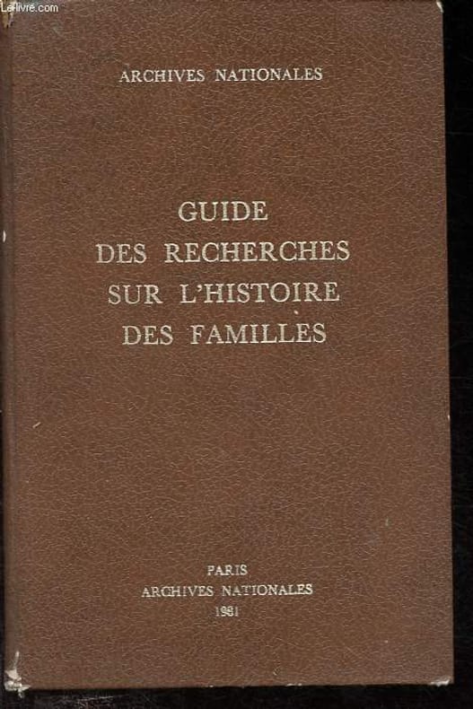 Archives nationales. 1981. In-8. Relié. Etat d'usage, Coins frottés, Coiffe en tête abîmée, Papier jauni. 335 pages, en supplément de nombreuses coupures de presse - coiffes abimées.. . . . Classification Dewey : 929-Généalogie