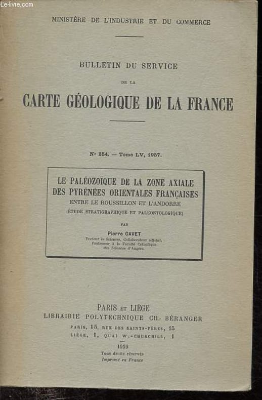 Ch. Béranger. 1959. In-8. Broché. Etat d'usage, Coins frottés, Coiffe en pied abîmée, Papier jauni. 216 pages, nombreuses cartes en noir et blanc dans et hors texte, nombreuses planches de photos en noir et blanc en fin d'ouvrage - 2e plat partiellement désolidarisé - Dédicacé par l'auteur en 1re page (photo dispo).. . . . Classification Dewey : 560-Paléontologie. Paléozoologie