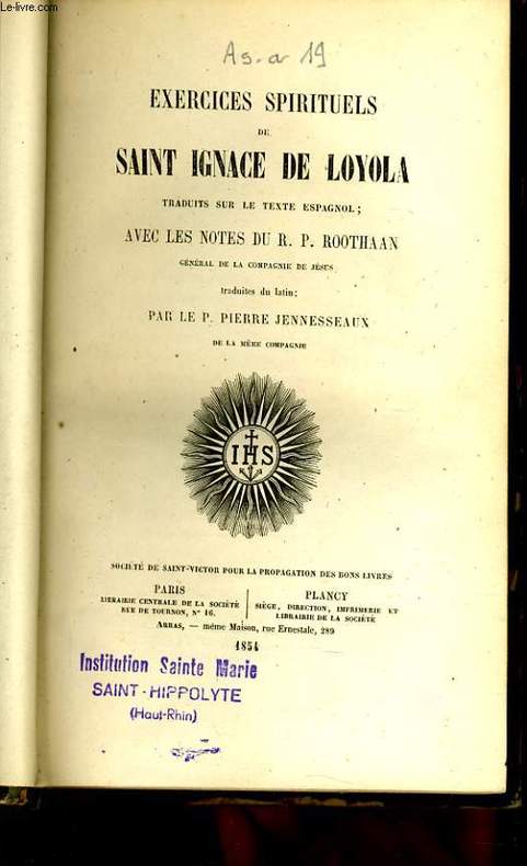 SOCIETE DE SAINT VICTOR POUR LA PROPAGATION DES BONS LIVRES. 1854. In-8. Relié demi-cuir. Bon état, Couv. convenable, Coiffe en tête abîmée, Intérieur frais. 376 pages. Dos cuir vert avec filet titre doré et etiquette de classement. Epidermures importante sur le dos. Tampon de l'institution sur la page de titre. Texte en allemand.. . . . Classification Dewey : 200-RELIGION