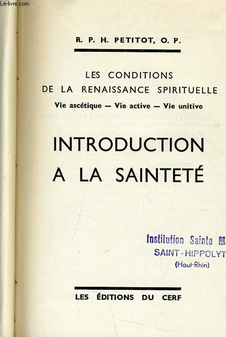 Cerf. 1934. In-12. Broché. Etat passable, Tâchée, Dos abîmé, Mouillures. 270 pages - illustration en noir et blanc en frontispice - tampon sur la page de titre - quelques rousseurs et traces de mouillures à l'intérieur de l'ouvrage sans conséquence sur la lecture - manque sur le 2ème plat - tâches roses sur le 2ème plat - 1er plat tâché - coiffes abîmées.. . . . Classification Dewey : 240-Théologie morale et spirituelle