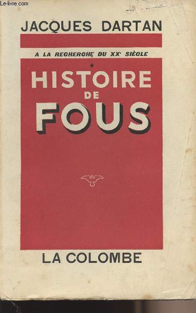 La colombe. 1959. In-8. Broché. Etat d'usage, Couv. légèrement pliée, Dos plié, Papier jauni. 254 pages. Quelques rousseurs sur le 2e plat.. . . . Classification Dewey : 840.091-XX ème siècle