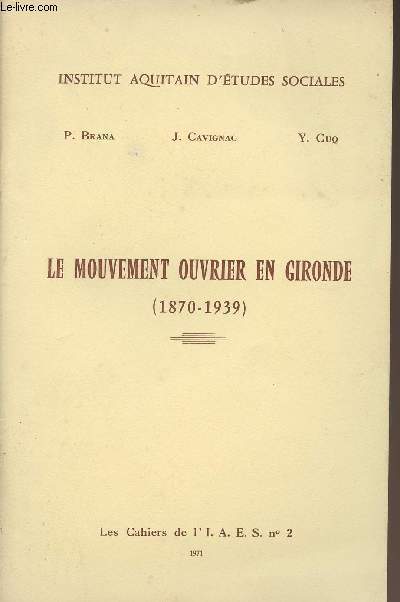 INSTITUT AQUITAIN D'ETUDES SOCIALES. 1971. In-8. Broché. Etat d'usage, Couv. légèrement pliée, Dos satisfaisant, Intérieur acceptable. 69 pages.. . . . Classification Dewey : 300-SCIENCES SOCIALES