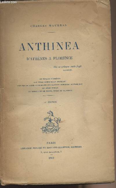 Le voyage d'Athènes - Une ville grecque et française - Figures de Corse - Le musée des passions humaines de Florence - Le Génie Toscan - Le retour et le foyer, notes de Florence. Classification Dewey : 900-GEOGRAPHIE, HISTOIRE, SCIENCES AUXILIAIRES DE L'HISTOIRE