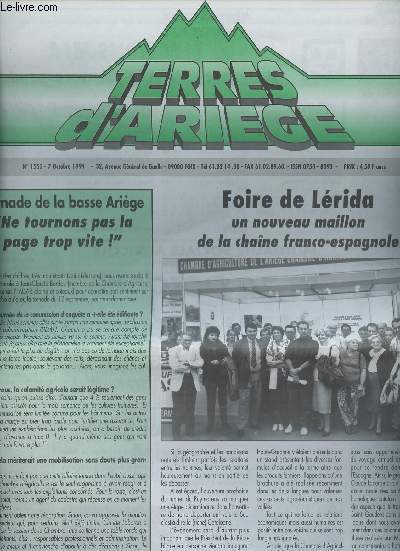 Terres d'Ariège. 1994. In-12. En feuillets. Bon état, Couv. convenable, Dos satisfaisant, Intérieur frais. 8 pages augmentées de nombreuses photos en noir et blanc dans le texte. Texte sur plusieurs colonnes.. . . . Classification Dewey : 70.1-Journaux