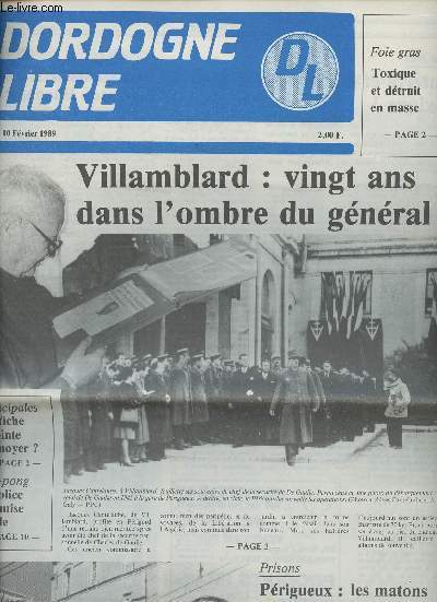 Dordogne Libre. 1989. In-Folio. En feuillets. Bon état, Couv. convenable, Dos satisfaisant, Intérieur frais. 15 pages augmentées de nombreuses photos et publicités en noir et blanc dans le texte.. . . . Classification Dewey : 70.1-Journaux