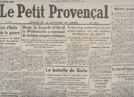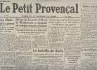Le Petit Provençal. 1943. In-Plano. En feuillets. Bon état, Couv. convenable, Dos satisfaisant, Intérieur frais. 2 pages augmentées d'une photo en noir et blanc dans le texte. Texte sur plusieurs colonnes. Réimpression intégrale d'après l'original de l'époque.. . . . Classification Dewey : 70.1-Journaux