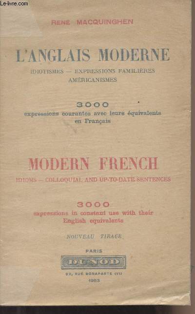 Dunod. 1953. In-8. Broché. Etat d'usage, Couv. convenable, Dos satisfaisant, Papier jauni. 264 pages.. . . . Classification Dewey : 420-Langue anglaise. Anglo-saxon