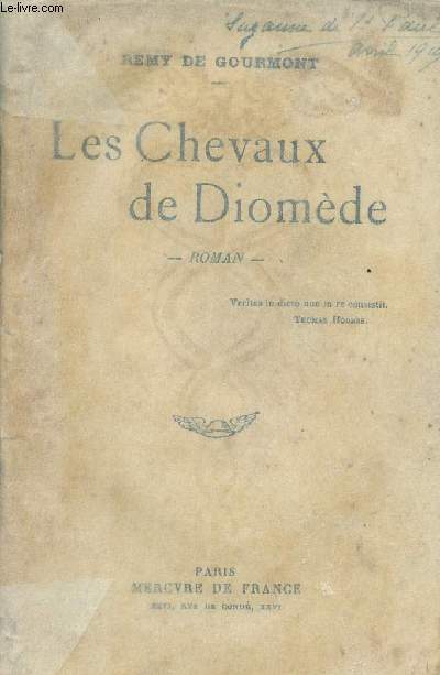 Mercure de France. Non daté. In-12. Broché. Etat d'usage, Couv. légèrement passée, Dos plié, Intérieur acceptable. 254 pages. Petites annotations à l'encre sur le 1er plat et la page de garde.. . . . Classification Dewey : 94.4-Editions numérotées