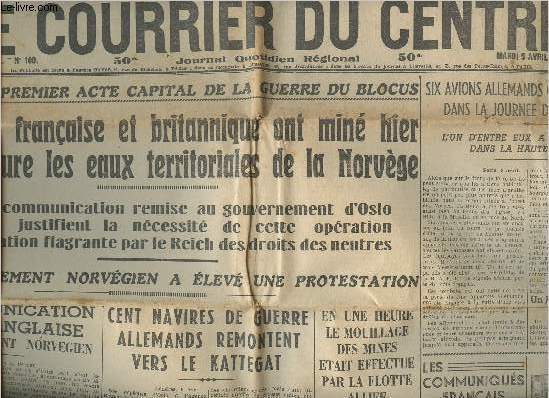 Le Courrier du Centre. 1940. In-Folio. En feuillets. Bon état, Couv. convenable, Dos satisfaisant, Papier jauni. 4 pages - quelques photos en noir et blanc dans le texte. Texte sur plusieurs colonnes.. . . . Classification Dewey : 70.1-Journaux