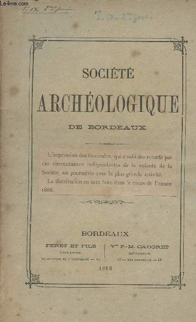 Feret et Fils. 1882. In-8. Broché. Etat d'usage, Couv. légèrement passée, Dos abîmé, Quelques rousseurs. Paginé de 66 à 132.. . . . Classification Dewey : 908.447-Régionalisme : Aquitaine