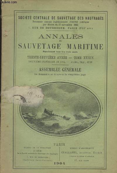 Bureau de la rédaction. 1904. In-8. Broché. Etat d'usage, Couv. légèrement passée, Dos plié, Intérieur acceptable. Paginé de 82 à 286. Illustrations en noir et blanc sur les plats. Papier collé sur le 1er plat. Coiffe en tête légèrement abîmée.. . . . Classification Dewey : 386-Marine