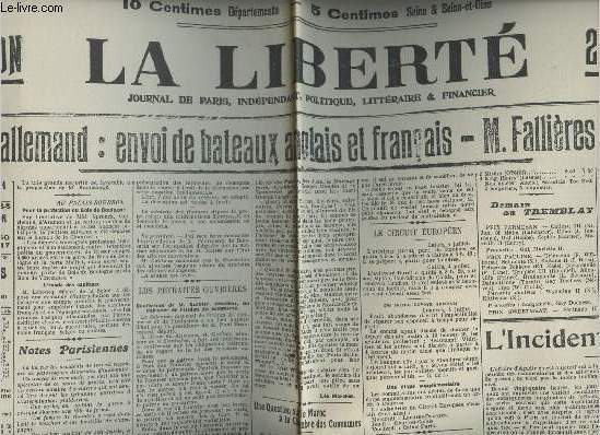 A la une. Non daté. In-Folio. En feuillets. Bon état, Couv. convenable, Dos satisfaisant, Intérieur frais. 2 pages. Texte sur plusieurs colonnes. Non daté.. . . . Classification Dewey : 70.1-Journaux