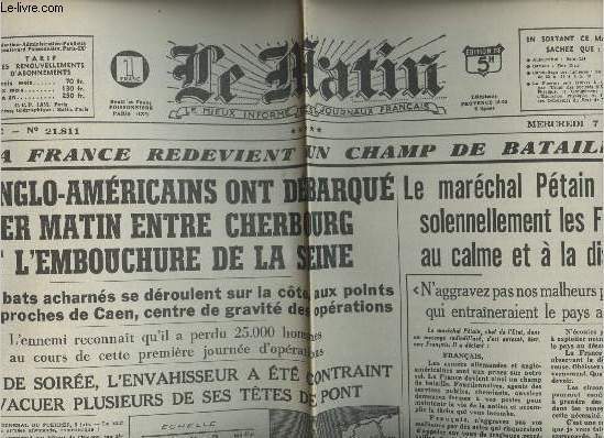 Le Maréchal Pétain exhorte solennellement les français au calme et à la discipline. Classification Dewey : 70.1-Journaux