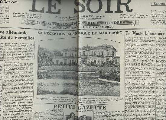 A la une. Non daté. In-Folio. En feuillets. Bon état, Couv. convenable, Dos satisfaisant, Intérieur frais. 2 pages - quelques photos en noir et blanc dans le texte. Texte sur plusieurs colonnes. Non daté.. . . . Classification Dewey : 70.1-Journaux