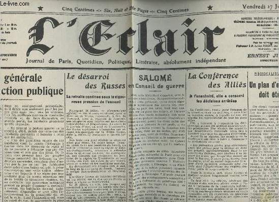 A la une. Non daté. In-Folio. En feuillets. Bon état, Couv. convenable, Dos satisfaisant, Intérieur frais. 2 pages. Texte sur plusieurs colonnes. Non daté.. . . . Classification Dewey : 70.1-Journaux