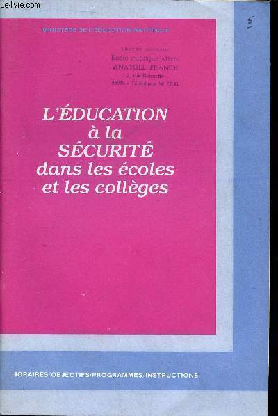 Ministère de l'éducation nationale. 1984. In-8. Broché. Bon état, Couv. convenable, Dos satisfaisant, Intérieur frais. 80 pages.. . . . Classification Dewey : 370-Education