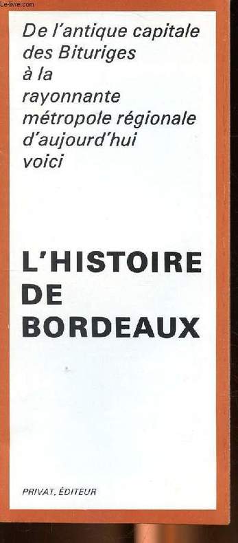8 vol. in-8 cartonnage éditeur sous jaquette illustrée, Fédération Historique du Sud-Ouest, 1972-1974. Rappel du titre complet : Histoire de Bordeaux (8 Tomes - Complet). Tome I : Bordeaux Antique ; Tome II : Bordeaux Médiéval I Le Haut Moyen-Age ; Tome III : Bordeaux Médiéval II Bordeaux sous les Rois d'Angleterre ; Tome IV : Bordeaux de 1453 à 1715 ; Tome V : Bordeaux au XVIIIe siècle ; Tome VI : Bordeaux au XIXe siècle ; Tome VII : Bordeaux au XXe siècle ; Tome VIII : Index Généra