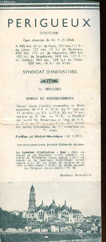 Périgord Panorama. 1982. In-4. Broché. Etat d'usage, Couv. convenable, Dos satisfaisant, Intérieur acceptable. 80 pages - nombreuses photos et illustrations en noir et blanc dans le texte. Texte sur plusieurs colonnes. Papier gondolé, traces de mouillures.. . . . Classification Dewey : 70.49-Presse illustrée, magazines, revues