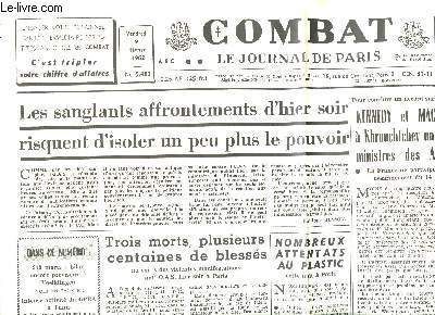 Sommaire: Les sanglants affrontements d'hier soir risquent d'isoler un peu plus le pouvoir, Algérie, Février 1962: Les musulmans, Kennedy et MacMillan proposent à Khroutchtchev une réunion des 3 ministres des Affaires Etrangères... Classification Dewey : 70.1-Journaux