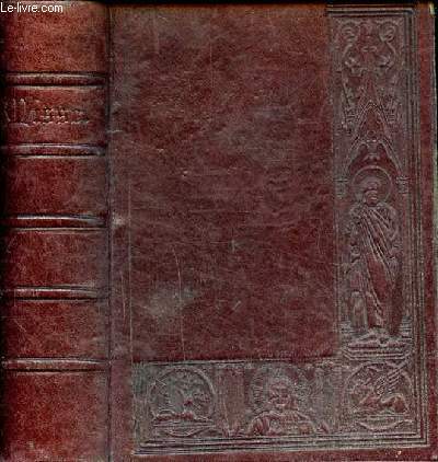 "Marc Barbou & Cie. 1890. In-16. Relié cuir dos-coins. Très bon état, Couv. convenable, Dos à nerfs, Intérieur frais. 539 pages augmentées de nombreuses gravures en noir et blanc dans texte et de quelques gravures en noir et blanc hors texte avec serpente. Reliure plein cuir de couleur bordeaux. Titre doré à froid sur pièce de titre. Tranches dorées. Tranches fines en couleurs sur coiffes. 2 signets conservés. Roulettes dorées sur contreplats.Gardes et contreplats recouverts de soie couleur or et rouge avec motifs. Frontispice de ""La Transformation de Notre Seigneur J.-C."" en noir et blanc avec serpente.. . . . Classification Dewey : 264-Le culte"