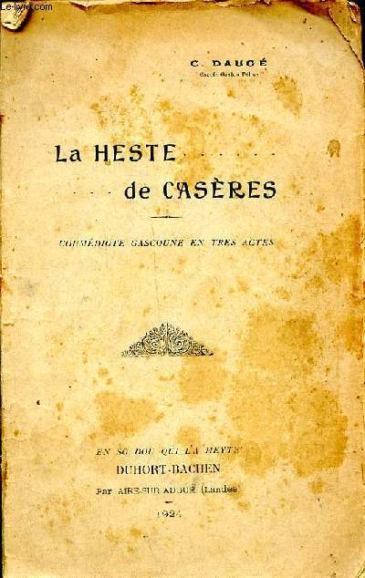 Duhort-Bachen. 1924. In-8. Broché. Bon état, Couv. défraîchie, Dos satisfaisant, Intérieur frais. 51 pages.. . . . Classification Dewey : 447.7-Gascon