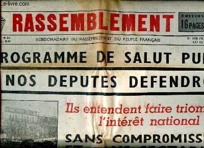Sommaire: Le programme de salut public que nos députés défendront; De Gaulle au conseil national; L'Allemagne de l'Est construit plus qu'elle ne reconstruit ... Classification Dewey : 70.49-Presse illustrée, magazines, revues