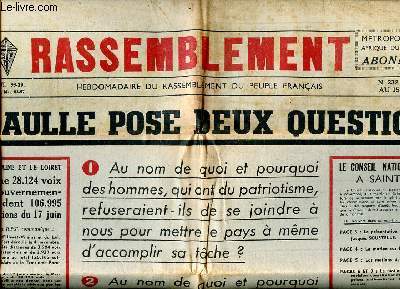 Sommaire: De Gaulle pose deux questions; Nous sommes le parti du mouvement; Nous avons interrogé les dirigeants de l'UNEF ... Classification Dewey : 70.49-Presse illustrée, magazines, revues