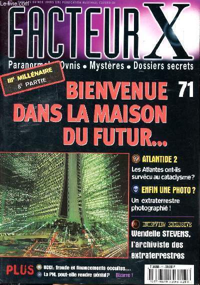 Sommaire: Les Atlantes ont-ils survécu au cataclysme; Un extraterrestre photographié; BCCI: fraude et financements occultes ... Classification Dewey : 130-Phénomènes paranormaux. Pseudo-sciences