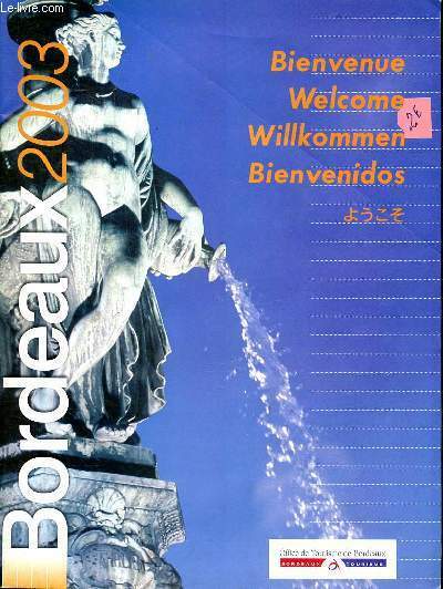 Ofice du tourisme de Bordeaux. 2003. In-4. Broché. Bon état, Couv. convenable, Dos satisfaisant, Intérieur frais. Brochure de 60 pages augmentées de nombreuses photos en couleurs dans texte.. . . . Classification Dewey : 908.447-Régionalisme : Aquitaine