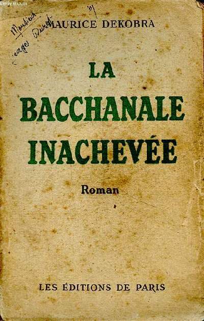1947 1947. Maurice Dekobra: La Bacchanale inachevée/ Les Editions de Paris 1947 avec envoi . Maurice Dekobra: La Bacchanale inachevée/ Les Editions de Paris 1947 avec envoi